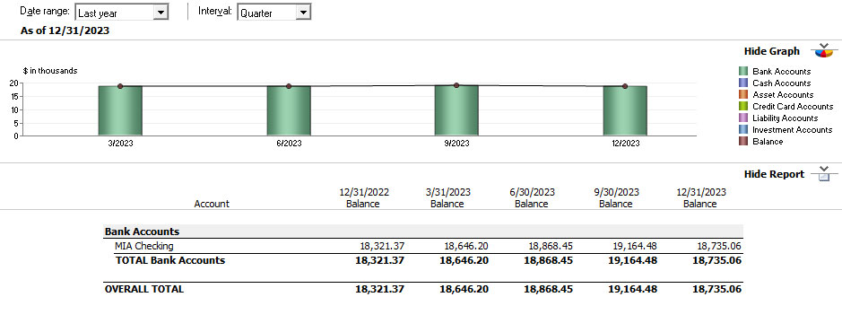 We started 2023 with US$18,321.37 in the bank, and our end-of-year balance was $18,735.06