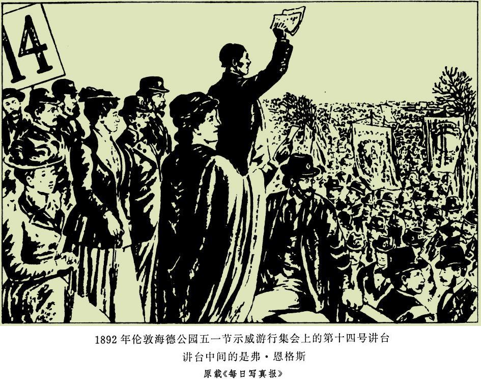 1892年伦敦海德公园五一节示威游行集会上的第十四号讲台 原载《每日写真报》…………………………334—335