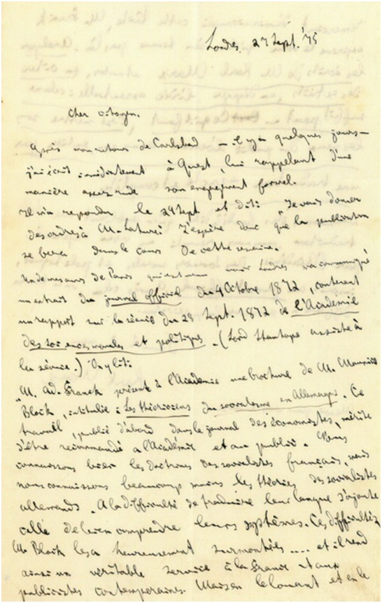 [3]先生的一个小册子,题目为《德国的社会主义理论家》。这篇著作最早发表在《经济学家杂志》上,值得推荐给科学院和公众。我们很熟悉法国社会主义者的理论,却很不了解德国社会主义者的理论。除了翻译他们的语言很困难外,理解他们的体系也很困难。幸而布洛克先生克服了这重重困难……并且为法国和当代政论家提供了真正的帮助。然而,弗兰克先生在赞扬并感谢布洛克先生完成这一任务的同时,表示希望布洛克先生不会止步于此。