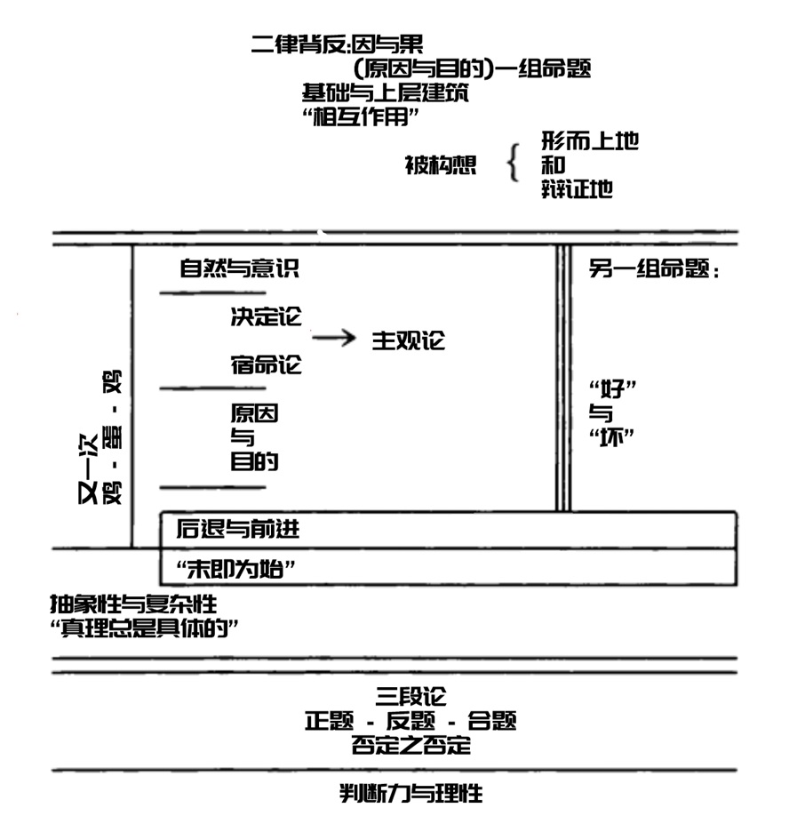 [34] 译注:实际上有个区分亚里士多德三段论(实际上这才是常人脑子里的三段论,分为大前提、小前提和结论。需要特别精细的研究请见卢卡西维茨《亚里士多德的三段论》)和“黑格尔主义三段论”,也就是常说的:肯定-否定-扬弃。