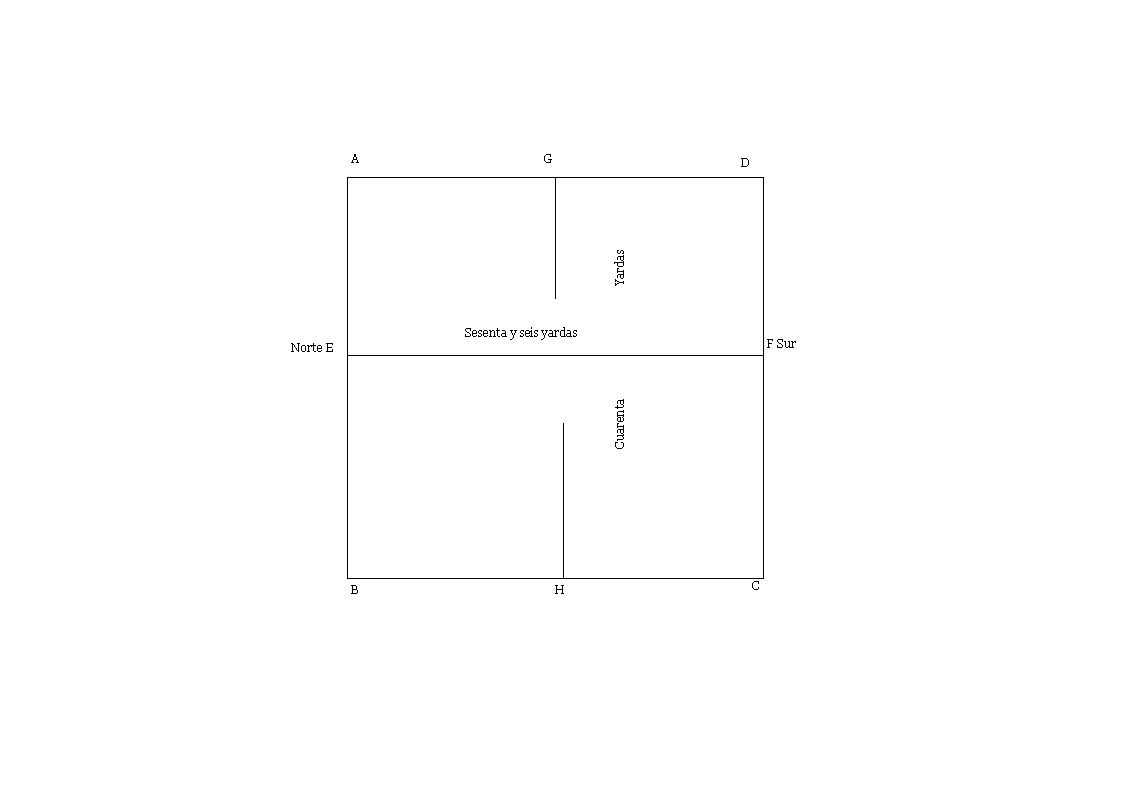 Se divide un campo en rectángulos de 76 yardas de longitud y 40 yardas de anchura, de modo que cada rectángulo tenga exactamente un acre de superficie. El modelo viene dado por el rectángulo superior.