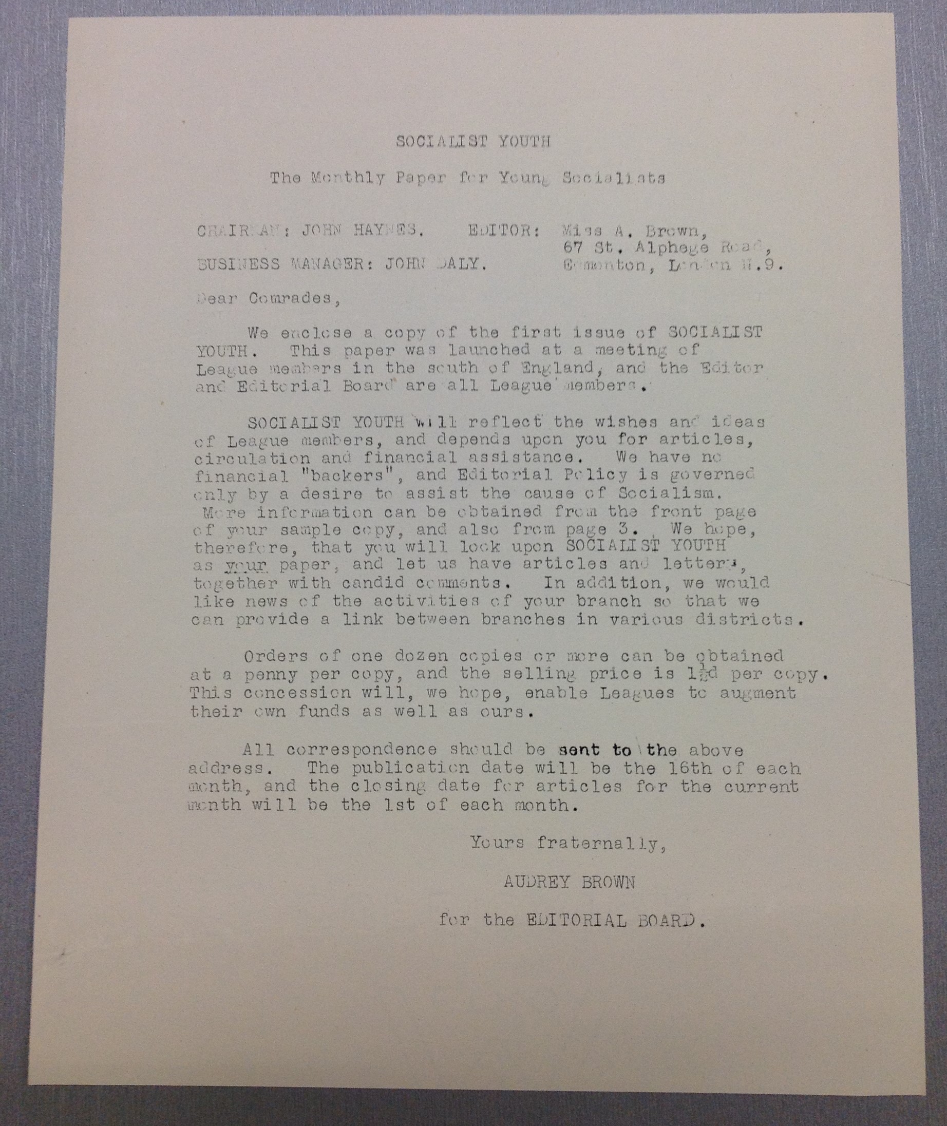 Keep Left started life as the duplicated journal of the Wembley Labour Leagues of Youth and then from 1955 Wembley North and West Hendon, later still it was branded A Paper For Socialist Youth but still Wembley and West Hendon, although by the end of the decade it had become a printed rather than duplicated paper and developed a national readership.