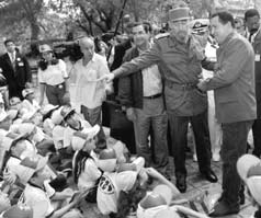 The groups leader, Luis Posada Carriles, has a well-documented history as a terrorist working for the overthrow of the Cuban government. He was charged for his role in the 1976 bombing of a Cubana airlines plane over Barbados. Seventy-three people, including the young members of Cubas Olympic fencing team, were killed. No one survived. Though arrested in Venezuela for his role in this atrocity, he mysteriously walked out of prison with the help of his counter-revolutionary Cuban associates. Cuba has requested the extradition of Posada Carriles and his associates from Panama. The Panamian government sent mixed signals as to whether or not it will grant Cubas request. Although Cuba retains the death penalty and Panama does not, Cuba has publicly declared it would not apply the death penalty in Posadas case. As of May, 2001 Panama has announced it will not extradict any of the gang. Venezuelas growing friendship with Cuba under President Hugo Chavez, a left-wing nationalist, is very significant. An entire section of the Jose Marti museum at the Plaza of the Revolution in Havana is devoted to Fidels fall 2000 visit to Venezuela. Cuban doctors have been caring for patients in Venezuela, and Venezuelans with unusual medical problems have been brought to Cuba for specialized care. Fidel addressed a special session of the Venezuelan legislature. When a few right-wingers complained, Fidel took up the points they raised and answered them. He made a detailed and eloquent presentation. You can read Fidels speech here. In Mexico, Fidel was an honored visitor during the inauguration of Vicente Fox, Mexicos first post-PRI president. Mexico is revitalizing relations with Cuba. The capitols first female mayor, Rosario Robles, a member of the Democratic Revolutionary Party, presented the Cuban leader with the keys to the city. He also met with leaders of the Roman Catholic hierarchy who publicly spoke out against the blockade, something their Cuban counterparts have never done. Fox appointed Jorge Castaneda his foreign minister. Castaneda wrote an unsympathetic biography of Che Guevara. Mexicos new ambassador to Cuba, on the other hand, is Ricardo Pascoe, a long-time left-winger. I met Pascoe many years ago when he was a member of a small revolutionary left-wing political party. I was a member of a similar party in the US. (Thats how we came to meet.) Like many others on the left, Pascoe joined the PRD, established by Cauhetemoc Cardenas after he left the Institutional Revolutionary Party, Mexicos former ruling party. So deep is Mexican opposition to the US blockade that even Vicente Foxs right-of-center National Action Party (PAN) participates in the Mexican movement of solidarity with Cuba! After the fall of the Soviet Union, during the presidency of Boris Yeltsin, Cubas relations with Russia soured. At the end of 2000, Cuba welcomed visiting Russian president Vladimir Putin. Both sides stressed their historic ties dating back to the days of the Soviet Union. Expanded economic and other activities were publicized, but few details were released. Cuba also announced during the Putin visit that it would not complete the Juragua nuclear power plant in Cienfuegos, which the USSR helped to construct. The Juragua plant was something the United States had made a big stink about. (This from the nation which gave us Hiroshima, Nagasaki and Three Mile Island.) For its own reasons, Cuba refused for years to publicly declare the nuclear plant project dead. So it became a big US media flap, and the US used it as an excuse to install radiation sniffing devices aimed at Cuba. More likely, they were devices to eavesdrop on Cuban communications. The US, which had complained so bitterly about the nuke plant when it was announced, was oddly silent about the decision to abandon it. However, this decision was in line with many other environmentally sensible things Cuba has initiated since the collapse of the Soviet Union. Part Three will follow in November. Erratum: Credit for the front cover photograph of the September issue, Volume 1, number 4, should have been given to Walter Lippmann. |