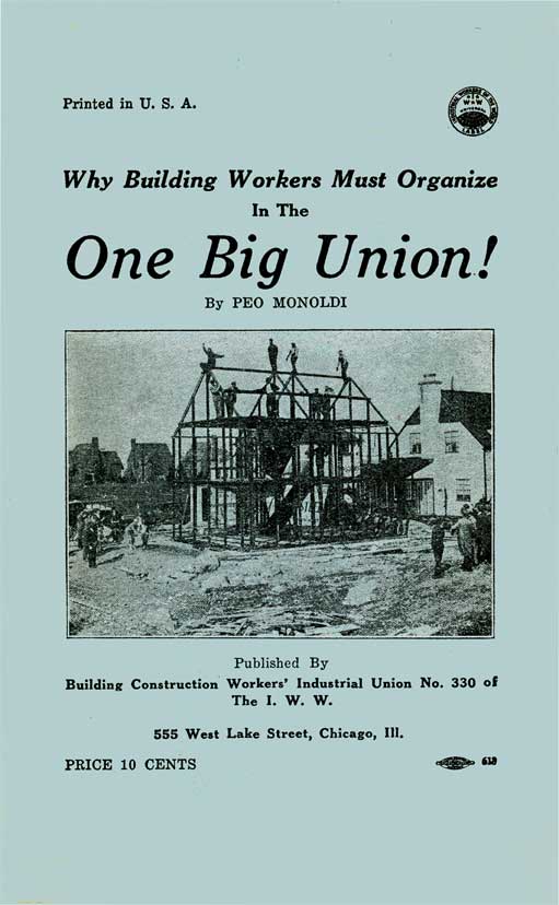 These evils of the business workers can only be eradicated by an industrial movement. But such a movement of the building workers is impossible while separate crafts and wage agreements are made favoring the building bosses, and against the workers, while our energies are wasted in jurisdictional squabbles which serve only to benefit the bosses and the union officials. A movement to fulfill the needs of the building workers must consist of one great Industrial Union, embracing all of the building workers of the entire industry, providing for autonomy industrially, and working class unity national and international, with all power to rest in the hands of the collective membership, instead of in the hands of union officials. Such an organization is Building Construction Workers’ Industrial Union No. 330 of the I. W. W. It is the only union in the United States that is making an effort to organize the building workers according to the industry in which they work. In the I. W. W. we maintain that irrespective of creed, color, sex or nationality, all the workers who are working in one industry should be in one union, so that they can present to the employers united demands concerning wages, hours and conditions for all working in the industry, and, if necessary, all strike together to gain their demands. In the I. W. W. we sign no contracts, nor have we business agents to arbitrate differences and to bind us to the bosses. Instead, committees are elected by the members themselves to present the demands to the bosses and to bring back the answer. Committees have no power to settle anything. It is entirely up to the membership to accept or reject.
