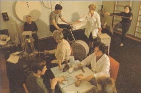 Injured workers recieve physiotherapy to help them overcome workplace accidents. (circa 1980s)
