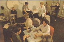 In the Palace of Culture, an area nearly all work places have (even if only in the form of a small library and reading room), workers stage an amateur theatre production after work. (circa 1980s)
