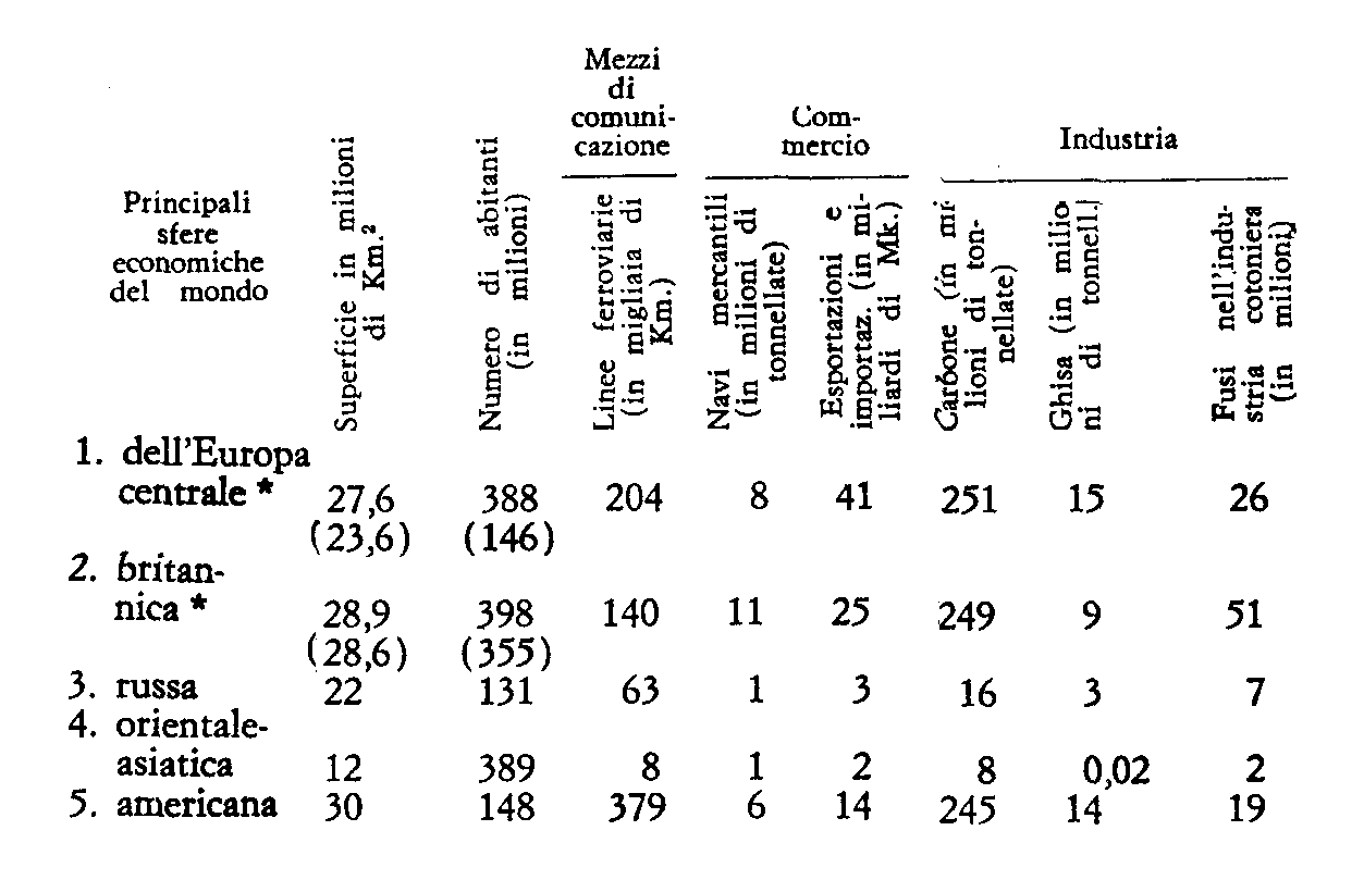 Ecco, informa riassuntiva, i dati economici forniti dal Calwer sulle dette sfere: