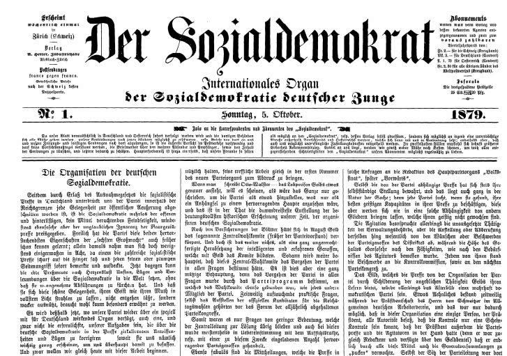 (1879-1890): órgão Central do Partido Social-Democrata da Alemanha na época da lei de excepção contra os socialistas. Foi editado em Zurique de 28 de Setembro de 1879 a 22 de Setembro de 1888, e em Londres de 1 de Outubro de 1888 a 27 de Setembro de 1890. Em 1879-1880 o jornal foi dirigido por G. Vollmar; a partir de janeiro de 1881 por E. Bernstein, que estava então sob a forte influência de F. Engels. A direcção ideológica de Engels garantia a orientação marxista do Der Sozialdemokrat. Depois de a lei de excepção contra os socialistas ter sido abolida, o jornal deixou de publicar-se e o Vorwàrts passou outra vez a ser o órgão central do partido.