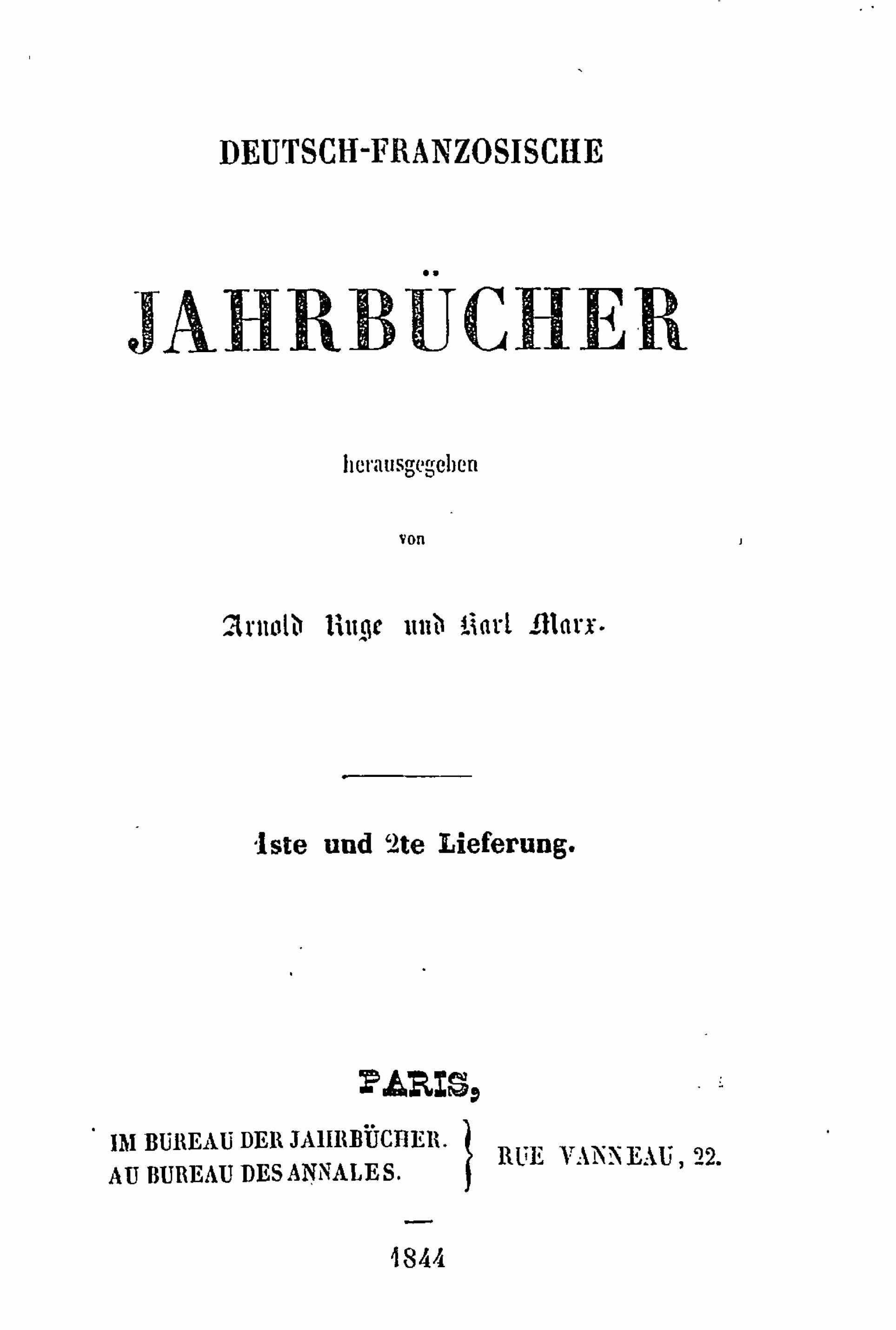 (Fevereiro de 1844): Foram publicados em Paris sob a direcção de K. Marx e A. Ruge em língua alemã. Saiu apenas um número, duplo, em Fevereiro de 1844. Incluía as obras de K. Marx: Sobre a Questão Judaica e Para a Crítica da Filosofia do Direito de Hegel. Introdução, assim como as obras de F. Engels Esboços para Uma Crítica da Economia Política e A Situação em Inglaterra: “O Passado e o Presente”, de Thomas Carlyle. Estes trabalhos traduzem a passagem definitiva de Marx e Engels para o materialismo e o comunismo. A causa principal do desaparecimento da revista foram as divergências de princípio entre Marx e o radical burguês Ruge.
