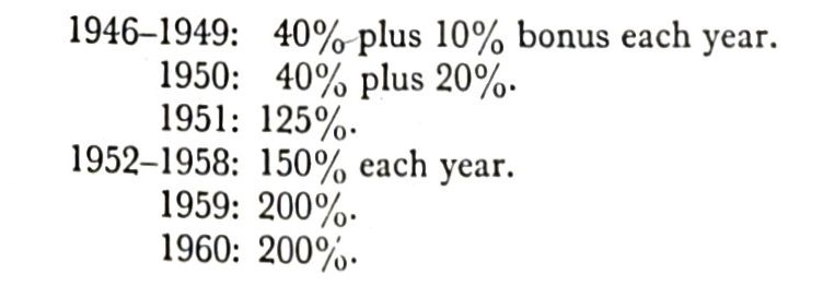 Its own production of diamonds has gone up from 895,744 carats in 1958 to 933,937 in 1960. Taken together with its earnings by way of royalties and investments in the diamond trade, it is small wonder that it has over the past fifteen years been able to declare the following impressive dividends: