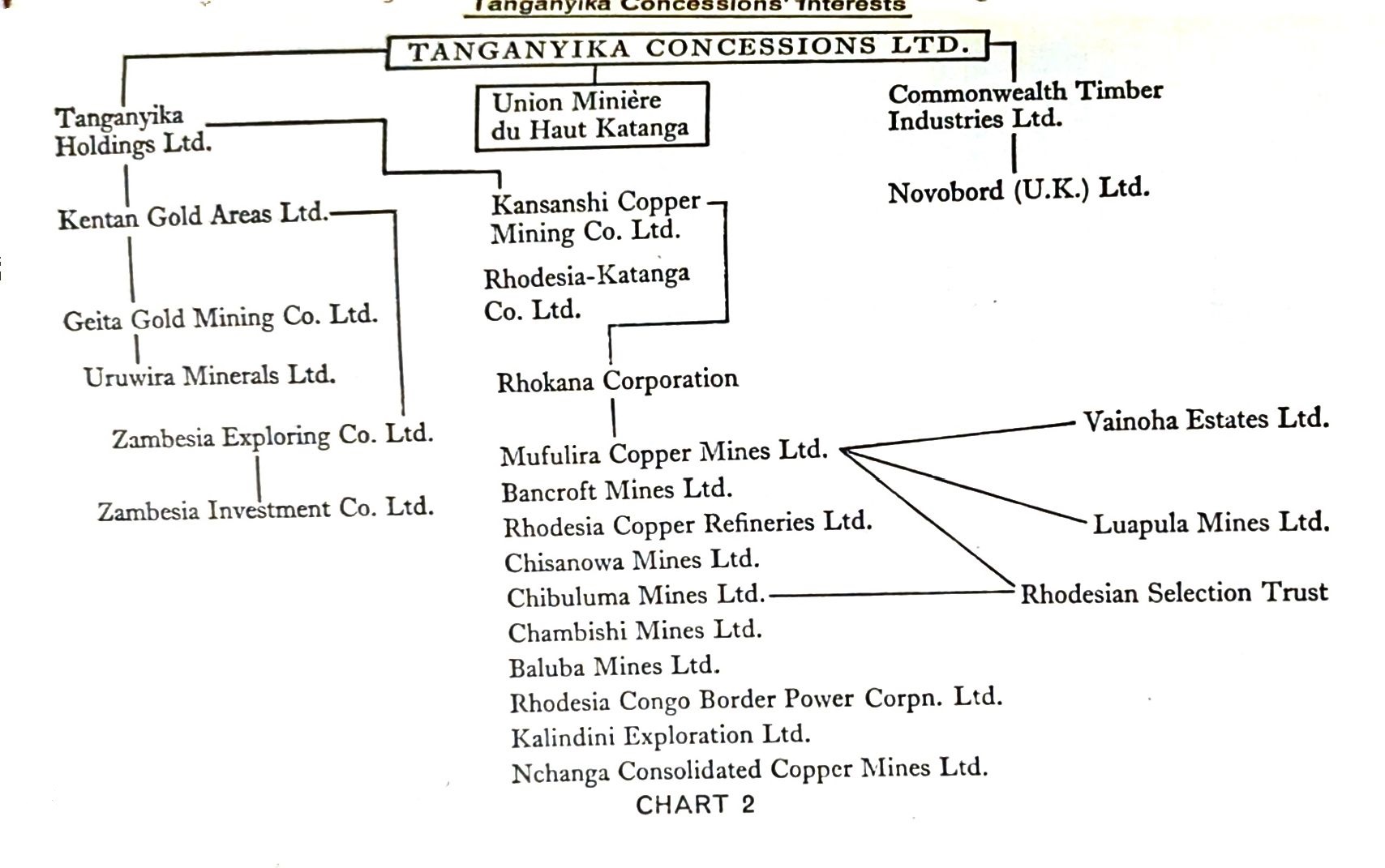 When Tanganyika Concessions was about to change its headquarters from London to Salisbury, it gave an undertaking to H.M. Treasury which no doubt had some bearing on the British government’s vacillating policy in the breakdown of the Central African Federation. It must also colour its behaviour in regard to the Congo and to Portuguese rule in Africa. The undertaking provided that for a minimum period of ten years, Tanganyika Concessions would not, without consent of the British Treasury, ‘dispose of or charge or pledge its interests or any part thereof in Union Minière du Haut Katanga or the Benguela Railway’ except, in the case of the latter, to the Portuguese Government under the terms of the Concessions Agreement.
