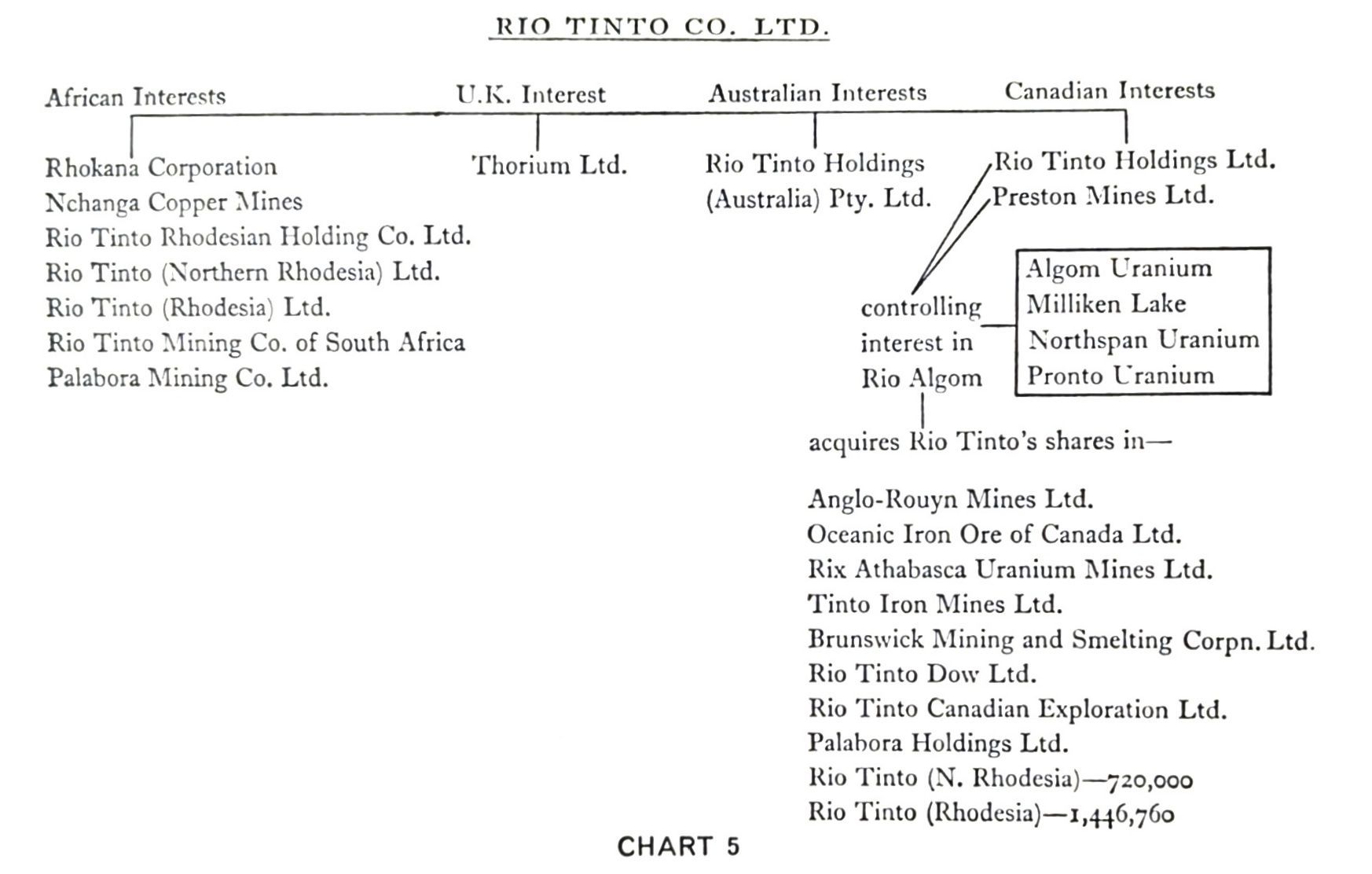 So tortuous and incredibly expansile are the links that tie the groups exploiting Africa’s resources with those enriching themselves in other corners of the earth that we should find nothing remarkable in being led back from Rio Tinto in Africa, via some of the most powerful American and British financial forces, into Rio Tinto in Canada.