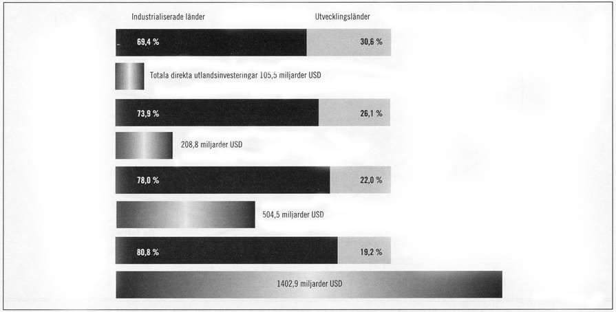 Ökningen av utländska direktinvesteringar bidrar till att marginalisera tredje världens länder. Diagram 1 visar tydligt hur dess andel av investeringsflödet drastiskt minskat. Nedgången är än mer dramatisk om vi ser till vilka länder inom denna grupp (ungefär 140 av världens i 80 länder) som mottagit dessa investeringar. Till tio av dessa, mestadels belägna i Sydostasien (inklusive Kina) har lejonparten av investeringarna kanaliserats i början av 1990-talet.